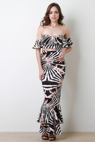 የታተመ የፍላስተር ባርዶት Top ከ Mermaid Maxi Skirt Set ጋር![]()  - Regular price